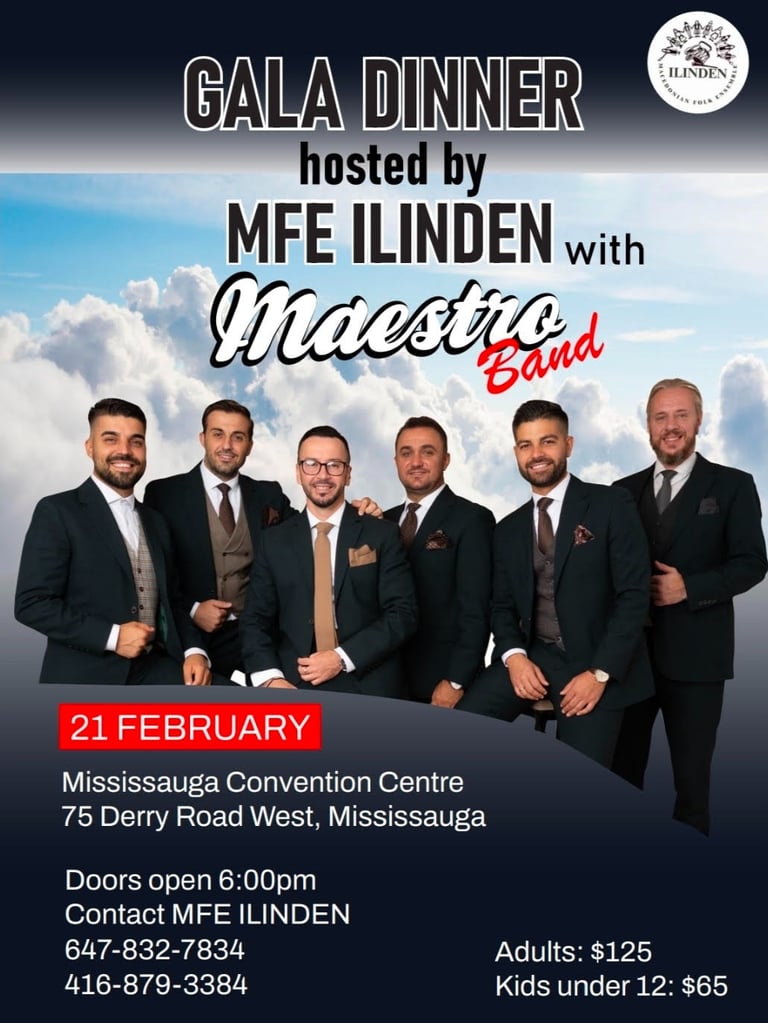Get ready for an unforgettable evening of elegance, culture, and live music! MFE Ilinden proudly invites you to a Gala Dinner featuring the sensational Maestro Band, happening on February 21 at the Mississauga Convention Centre.